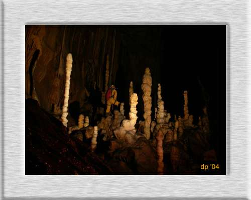 und die Versinterungen auf dem Waldweg schon regelrecht riechen konnten. Unsere Strategie lautete: Durchlaufen, die Schönheit genießen und auf dem Rückweg das Schönste mitnehmen. Natürlich ohne sägendes oder abschlagendes Geräusch, sondern mit leisem klicken der Kamera und fauchen der Blitze. Um nichts in der endlosen Versinterung zu zerstören, sahen sich unsere zwei Sinterkonsumenten sehr