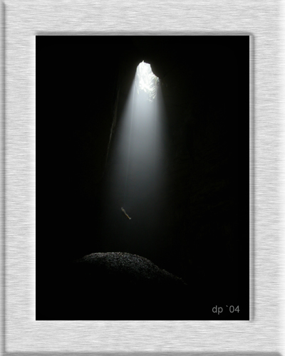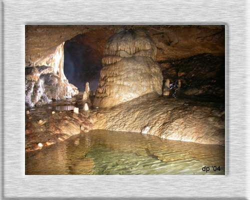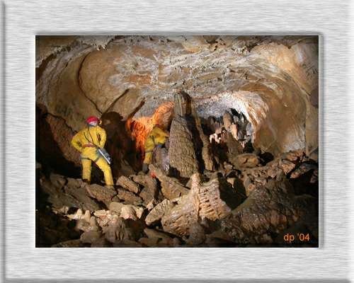 Dorf. Unsere zwei Höhlenfreunde drangen bis an den tiefsten Punkt der Doline vor und sahen einen Schacht von 15-20m Felswand hinunter. Der Schachtmund betrug ca. 20 x 8m. An der letzten Umhängestelle öffneten sich die Felswände und gaben einen riesigen Raum frei. Frank