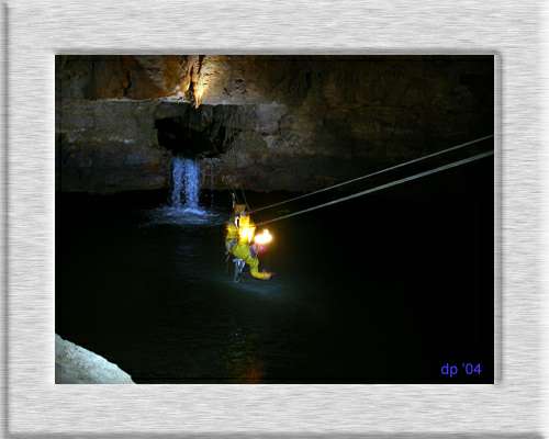 darauf spazierte das gelbe Höfo-Gespann ungeduldig und mit glühenden Abseilern in den Tiefen der Grotte de la Malatiére