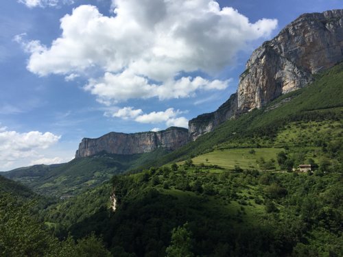 Abends sind wir alle wieder am Haus vereint. Schnell wird ein leckeres Abendessen zubereitet, so das die Planungen für den nächsten Tag beginnen können. Die Grotte de Bournillon soll es morgen sein. Montag, 06.06.2016:: Trotz der großen Hochwassergefahr der Grotte de Bournillon, zählt die Höhle zu den ganz großen und meistbesuchten Klassikern des Vercors. Einerseits lockt der sehenswerte Eingangsbereich mit dem größten Höhlenportal Europas, andererseits ist die Höhle relativ einfach zu befahren, sofern die Witterung mitspielt. Doch schon der etwa 40minütige Weg zur Höhle, bis in den gewaltigen Felskessel ist aufregend und sehenswert.