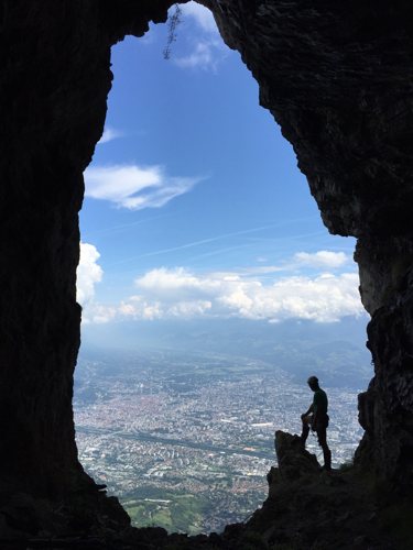 Schließlich folgt der schweißtreibende Aufstieg zur Höhle, dann wird eingeschlazt und wenig später geht es rein.