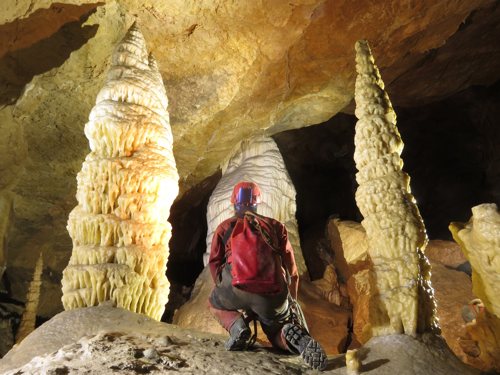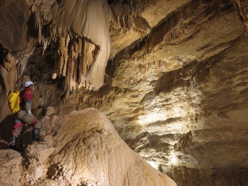 noch dazu tief. Doch obwohl sie bis –393 m hinab zieht, wird nur wenig Seil benötigt. Die Gipsblumen