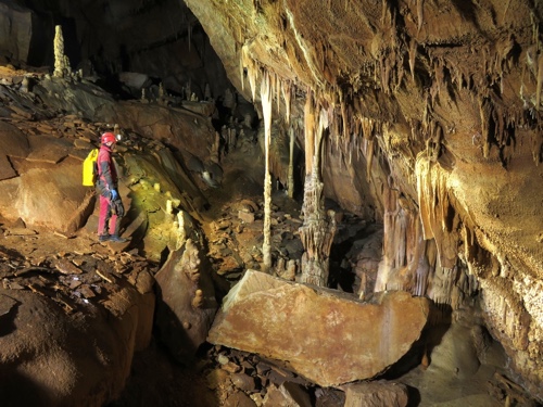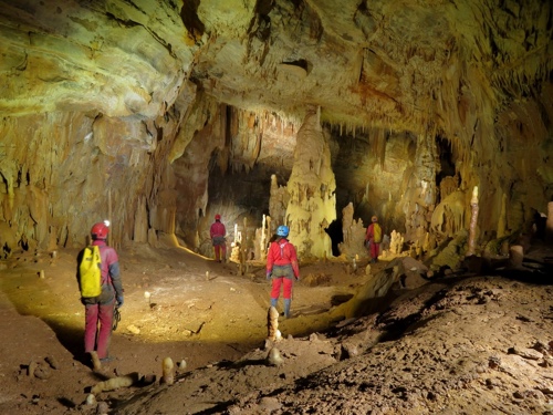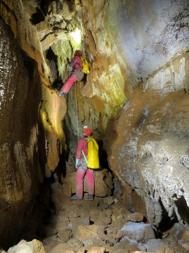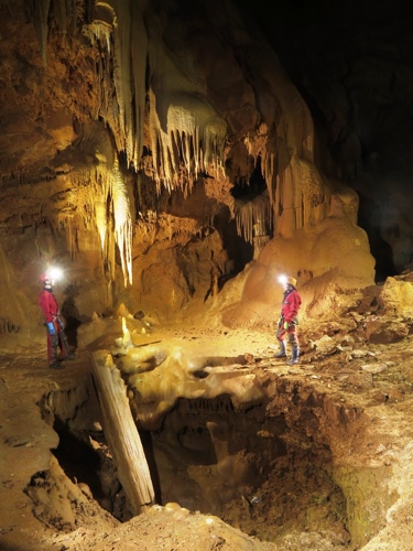 etwas. Riesige Hallen, superschönen Sinter, Seilabstiege und richtig lehmige Stellen.
