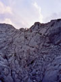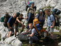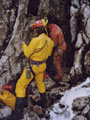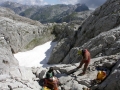 Steinernes Meer - Leiterkopf - Katastergruppe 1331 Das Forschungsgebiet am Leiterkopf liegt in der südöstlichsten Ecke des Steinernen Meeres, nördlich des Rosentalhörndls in einer Höhe von ca. 2000 bis 2200m. Forschungen im Steinernen Meer bedürfen generell der Genehmigung durch die Nationalparkverwaltung und für die jährliche Forschungswoche am Leiterkopf muß diese Genehmigung jedes Jahr durch den VHM neu beantragt werden. Der VHM kann bei seinen Forschungen im Steinernen Meer schon auf eine beinahe 40 Jahre alte „Tradition" zurückblicken, insbesondere in Person von Toni Müller, der bereits im Jahr 1968 erstmals auf das riesige Karstplateau des Steinernen Meeres aufmerksam wurde. Bis heute ist Toni dem Steinernen Meer treu geblieben, geht seit damals jährlich mehrmals hinauf, fand in den Jahren immer wieder Gleichgesinnte die ihn unterstützten, oder wie in den letzten Jahren in Person von Steffen Pohlenz und Rainer Bornschlegl Freunde die bereit waren die Forschungen fortzuführen. Über Rainer Bornschlegl sind wir 2004 erstmals zur „Höhlenforschungsgruppe Leiterkopf" gestoßen, waren fasziniert von dieser grandiosen Karstlandschaft und waren im Jahr 2005 dann sogar zu dritt dabei. Forschungstouren 2004 - 2006Die Höhlen haben typischen alpinen Charakter, sind durch Canyons und Schächte geprägt, lediglich in einer Höhe von etwa 2070m ist eine Anhäufung horizontaler Gangpassagen festzustellen. Erschwert wird die Forschung, der Höhenlage entsprechend durch ganzjährig Eis in weiten Bereichen der Höhlen, durch die niedrigen Temperaturen und durch die große Wassergefahr in den Canyons bei Wetterumschwüngen. Die Forschungsarbeiten konzentrierten sich in den letzten Jahren auf den