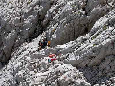 auf den unendlich langen Marsch in Richtung Steinernes Meer - Plateau. Nach einigen hundert Metern, merkte