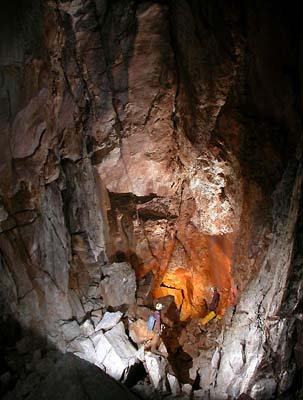 Die Kluft besitzt zwei sehr interessante Fortsetzungen. Einer möglichen, tiefer gelegenen und einer vermutlich