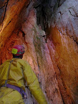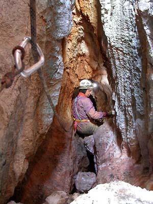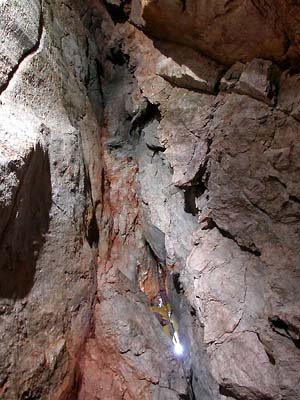 Die nun folgende Kluft wurde für weitere Befahrungen von Rainer komplett ausgebaut. Viele mögliche Fortsetzungen